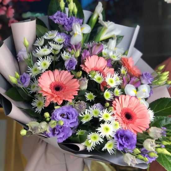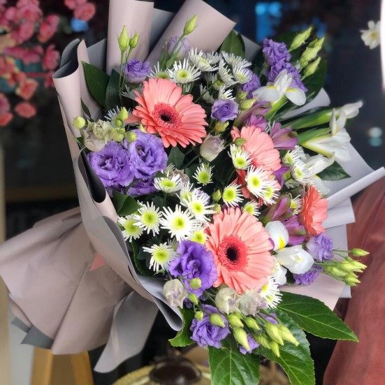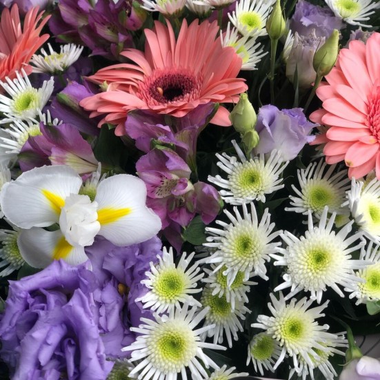Букет очень гармоничный и красивый. Я его купила чисто для себя, чтобы хоть немного украсить квартиру. Уже стоит 5 дней, пока всё хорошо.